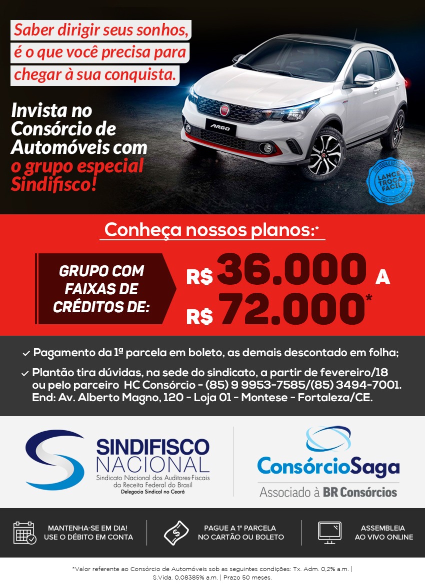 A SAGA também enviou aos filiados um formulário de pré-adesão ao grupo de consórcio visando facilitar a negociação entre os interessados e a empresa. A administradora de consórcio foi escolhida pela categoria em Assembleia Local, que aconteceu no último dia 7 de dezembro, na sede da DS/CE.